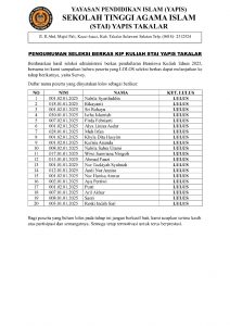 UncategorizedPENGUMUMAN : HASIL SELEKSI BERKAS KIP KULIAH STAI YAPIS TAKALAR TAHUN 2025 by admingSeptember 16, 2025September 28, 2025021 Share0